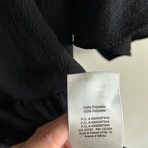 Made from textured black 100% polyester, it drapes beautifully and works well for both casual and dressy looks. The crew neckline and subtle peplum silhouette make it a great match with high-waisted denim, trousers, or a flowy skirt.