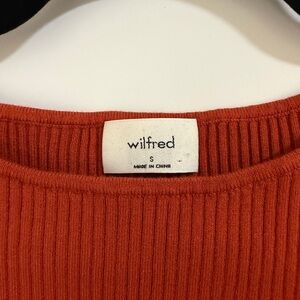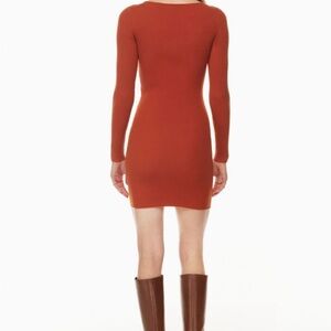 Cut-Out Knit Longsleeve Mini Dress by Wilfred in rust/ red colour. Can be worn with the cut in front or back. Worn once.