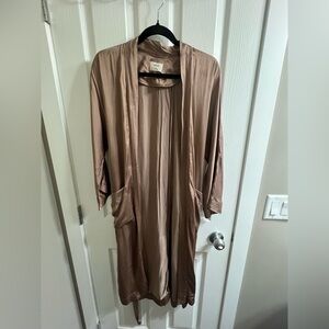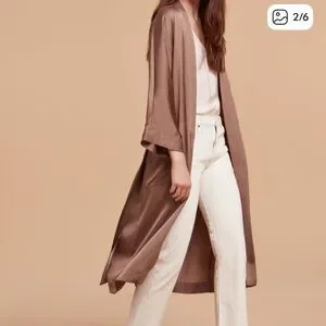 Chic Wilfred satin duster. Soft brown hue. Ideal for layering.