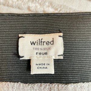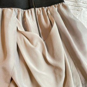 Champagne-color Aritzia skirt, 100% silk with a wide and very comfortable black elastic waistband. that sits right at the waist.