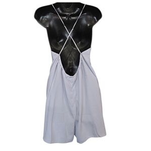 Wilfred Size Med. Romper With Pockets. The romper is fully lined and the straps are adjustable. There are a couple of small pulls by the pocket as shown in the photo.
