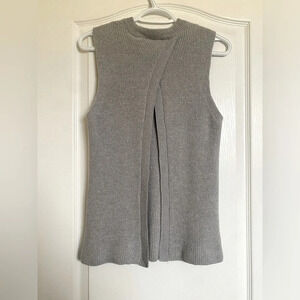 This sleeveless, open cross back sweater is classic and visually stunning! 100% wool, it is cozy and comfortable and open back allows for a comfortable, flattering fit on any body!