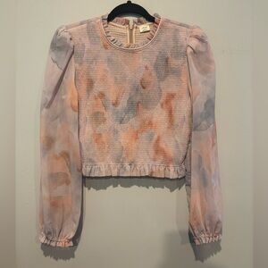Elevate your wardrobe with this romantic Wilfred blouse from Aritzia. Featuring smocked detailing and long, flowy sleeves, this top brings effortless elegance to any outfit. The soft, lightweight fabric drapes beautifully, perfect for both casual and dressy looks. Pair with high-waisted jeans or a midi skirt for a polished, feminine vibe!15