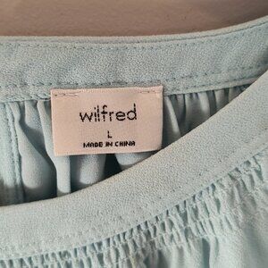 Breezy and feminine with a flattering fit, this soft blue Wilfred dress is perfect for sunny days or layering with a denim jacket. Features a high gathered neckline, sleeveless cut, stretchy smocked waist, and a fluttery ruffle hem for extra movement and charm. Lightweight and easy to wear, your new go-to for casual brunches, garden parties, or barefoot beach walks.