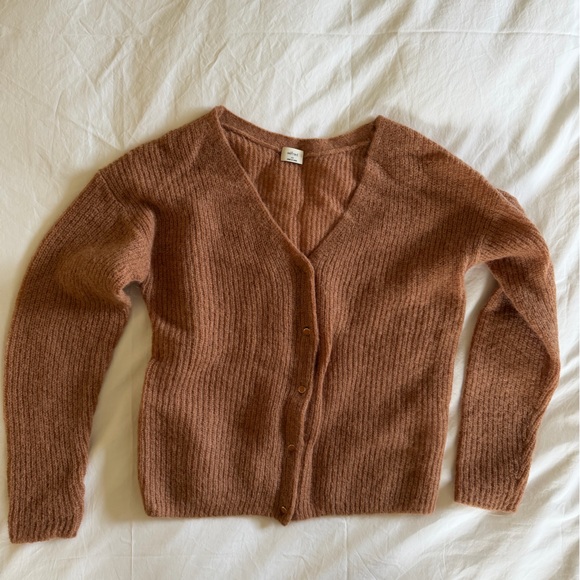 Chic ribbed alpaca & mohair cardigan by Wilfred. Soft and versatile. Ideal for layering.