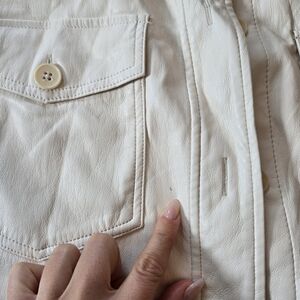 I only wore this a few times and then it was packed away for over a year and something it was packed with caused discoloration on the back. I'm not sure how to get it off (haven't tried) - the price reflects this. A small blue dot on the front, pointed out too.