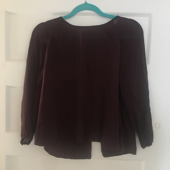 Gorgeous burgundy colour blouse Flowy rayon fabric with back slit, but covers when laying flat Perfect condition