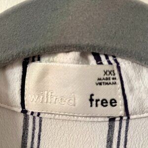 Cute white with black stripes button down crop top. Label suggests dry clean but this one was washed on delicate and laid flat to dry and it's perfect!