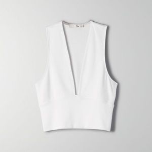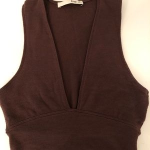 Sold out Aritzia tank. Plunge neck and a very soft material. Worn twice, great condition. Colour is stunning! In-between brown and purple.
