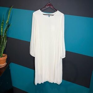 The Wilfred dress in a crisp white hue is perfect for a casual night out, weeding reception showcasing a midi length with a relaxed fit. Its sophisticated touch to its simple design.