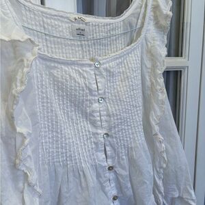 Chic white blouse with ruffled sleeves. Button-front design. Ideal for casual elegance.
