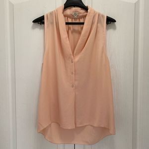 Wilfred Women's Shirt Top Sleeveless Sheer V-neck Button Up Hi-Low Peach Small