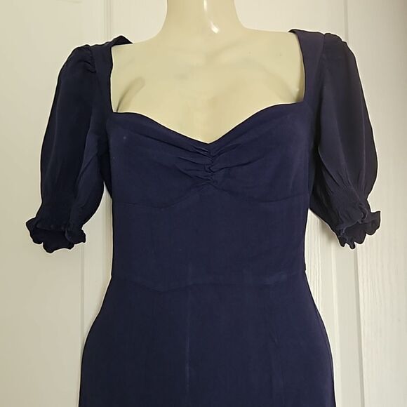Wilfred Women's Sweetheart Neckline Midi Dress With Front Slit 00 Navy Blue