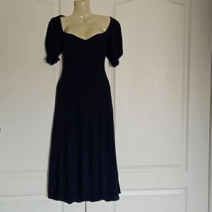 Wilfred Women's Sweetheart Neckline Midi Dress With Front Slit 00 Navy Blue