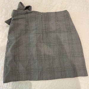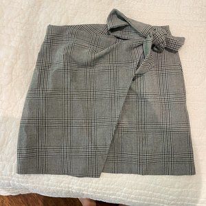 This is a high-rise mini wrap skirt with darts at the back for shaping. It’s made with Italian Flannel — a warm, virgin wool–cashmere blend with comfort stretch. Never worn aside from trying it on in store and for this photo.