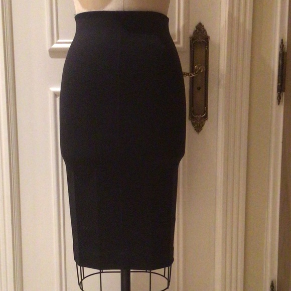 The skirt is complete stretch with self covered elastic waistband (mannequin basket makes it look squared off)