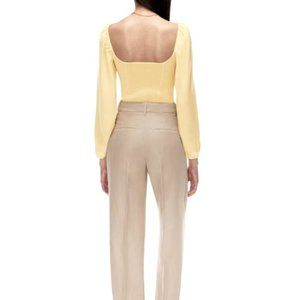 Chic yellow blouse by Wilfred. Features puff sleeves and tie front detail. Perfect for a stylish look.