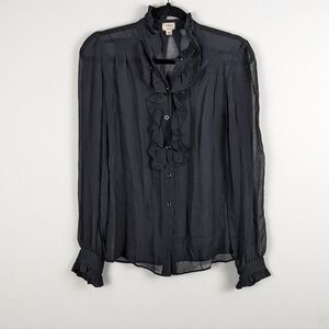 Wilfred aritzia Sheer black blouse button front frill top XS