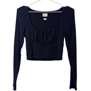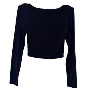 Wilfred black crop long sleeve ruched scoop neck top size S
