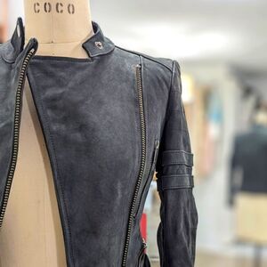 Heavy nubuck charcoal leather with quilted lining. Heavy weight gunmetal hardware throughout.
