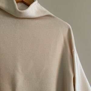 Classic 100% merino mock neck sweater. Great condition with except there’s a small hole in one sleeve - but easily mended or just hidden by folding back the cuff as the arms are very long anyway!