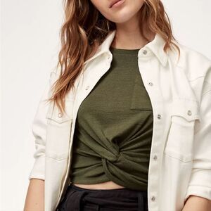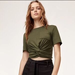 Wilfred Free green Subah T-shirt front-knot short sleeve crop tee