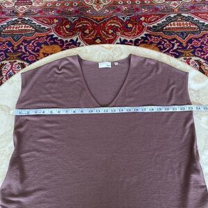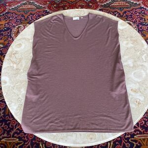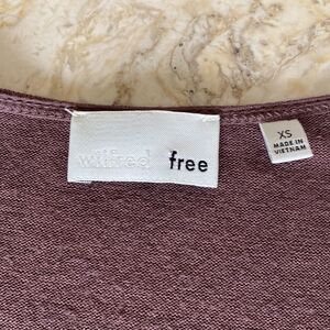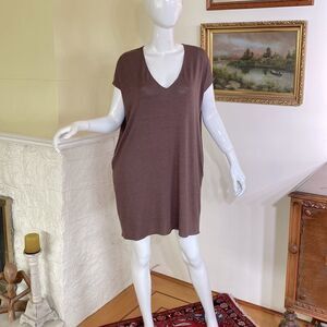 In very good preowned condition soft and cozy Wilfred mini dress features an oversized style, v-neck, drop shoulder and hidden inseam pockets.