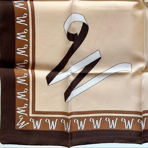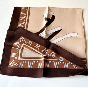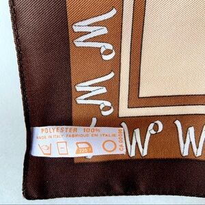 Vintage W monogrammed scarf, made in Italy. Shades of brown with beige centre.