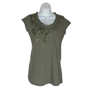 Willi Smith Green Metallic Beaded Embellished Cap Sleeve Cotton T-shirt Small