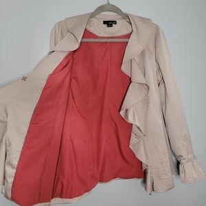 Willi Smith Medium Cream Ruffle Blazer Jacket with Orange Lining