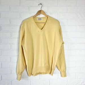 William Lockie designer Scottish lambswool yellow V neck pullover sweater 46