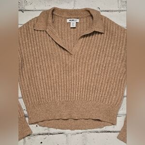 William Rast Ribbed Collared Cropped Sweater Tan Size Small