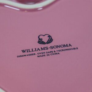 Add a touch of romance to your table setting with this set of four Williams-Sonoma Ruffled Heart Shaped Dishes/Plates. The solid multi-color design and vintage original backstamp make these stoneware plates a charming addition to any collection. The heart-shaped design is perfect for Valentine's Day or any other occasion that calls for a festive touch. These plates were made in China and have a printed backstamp. They are not handmade and are not vintage. This set includes four plates and is perfect for serving salads or other dishes.