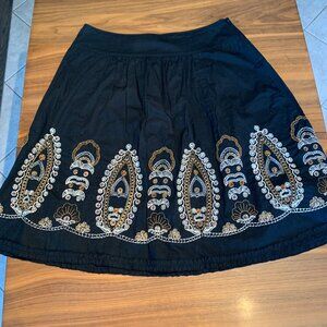 Willow Blossom embroidered dirndl style skirt. EUC, sz 12, cotton, black, white