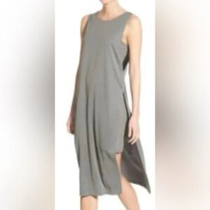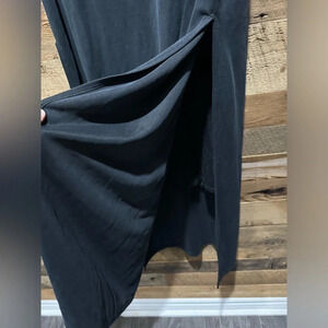 Like new condition. Deepest charcoal, almost black. First pic is to illustrate how unique and interesting the dress is. Soft, almost a thin faux suede high quality sheath with slits, over a jersey inner layer that has cutouts and detailing that makes the dress flow. Casual, dressy, street style or a festival. This dress is versatile and on trend. Pit to pit 19 inches (drop pit with stretchy inner liner)