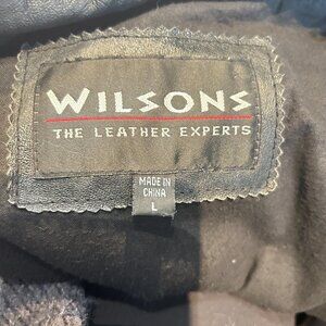 Wilson Black Leather Anorak Jacket L Full Zip Snap Matrix Style Quilted Lining