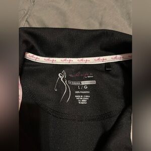 Stylish black tee with pink accents. Short sleeves. Comfortable fit. Perfect for casual wear. Activewear