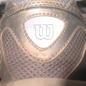 Wilson Symmetrix shoes, in grey and light blue, size 9.5. Barely worn for one season. The interior and soles are like new.
