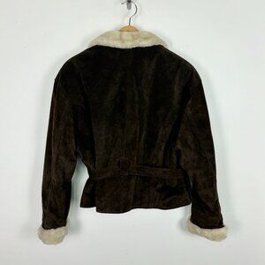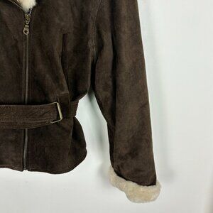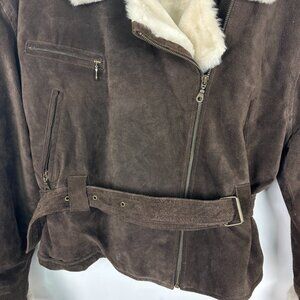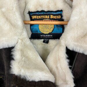 Wilsons Leather Adventure Bound Bomber Jacket Suede Faux Fur Brown Mens Size XL