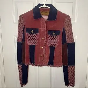 Wilson’s Leather Vintage Cowgirl Pink & Purple Suede Leather & Crochet Jacket S