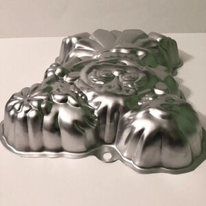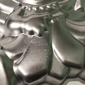 This cake pan is pre-owned and in used condition. They are scratches and marks on it. The instruction paper has some stains. Please see all photos for exact item.