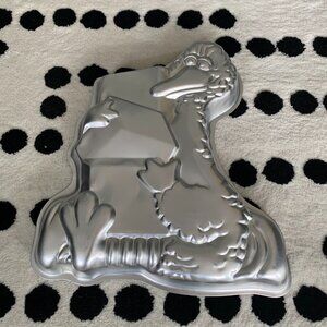 The Wilton Vintage 1978 Big Bird Cake Pan is a retro Sesame Street collectible item that is perfect for a 70's themed birthday party. This aluminum cake pan features the iconic character of Big Bird in a silver color, making it a unique and nostalgic addition to any kitchen or collectibles display. The pan is easy to clean and has a vintage appeal, capturing the essence of the beloved cartoon and TV characters from the 1970s. With its one hole design and original Wilton brand, this cake pan is a charming piece of bakeware that is sure to delight fans of Sesame Street and vintage memorabilia.