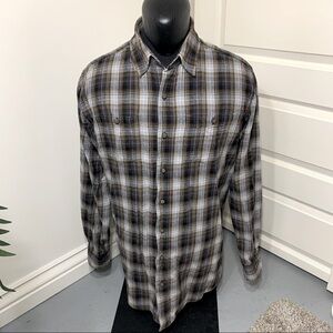Wind River Flannel Shirt Button Down Men Sz XLT Plaid Brown Grey Long Sleeves