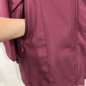 Features: zippered pockets, zipper and button closure, and soft lining. Excellent condition!