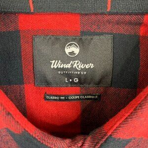 Wind River Men Shirt Large Red Black Buffalo Check Flannel Button Up Long Sleeve