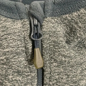 This is in good used condition. You can tell it’s been washed as the zipper is just a little bit warped, though it’s still a quality softshell jacket.