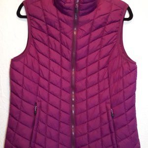 High collar zipper front "Wind River" quilted vest. waterproof. Never worn. Magenta size large
