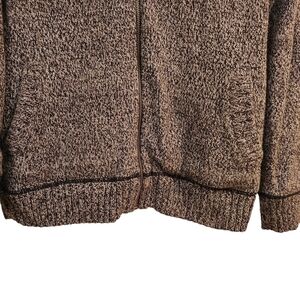 WindRiver, Zip-up front, gray and black, hooded, long sleeve sweater. Knitted design, black trim, shell is cotton/Acrylic with polyester body lining. Super warm, thick, comfortable,stretchy and in good condition size Small