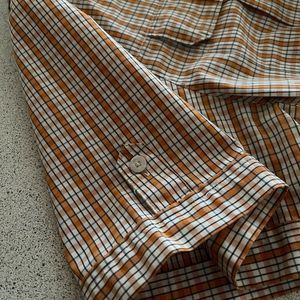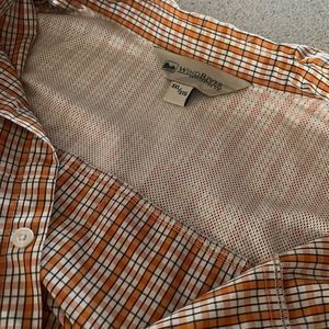 Short sleeved button down plaid shirt with breathable mesh on the top back.