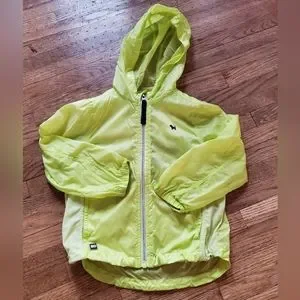 Light yet warm enough . Neon green color. in very good condition. Tag size is 5 yo but it runs small . Best for 3-4 yo. Korean brand.
